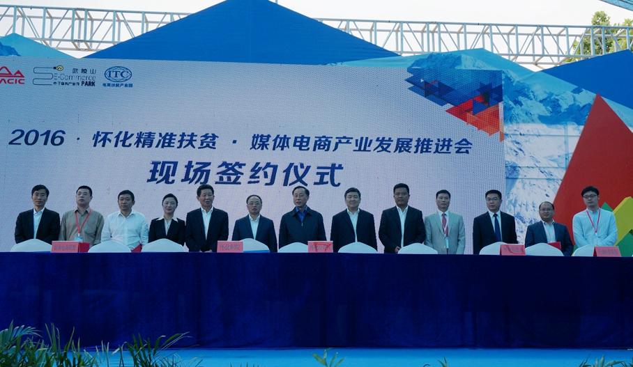 521日上午9点,2016怀化精准扶贫﹒媒体电商产业发展推进会在怀化文化创意产业园隆重举行。怀化市市委书记彭国甫、市长赵应云、市委副书记邹文辉等领导出席了推进会,来自全国的数百家媒体参与报道了本次盛会。我院应邀参加了本次推进会,院长王聪田代表我院在现场签约仪式上与怀化经济开发区管理委员会正式签订区校合作框架协议。